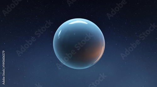 Digital illustration of a spherical object in the center of a dark blue background with small white stars scattered throughout.