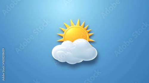 Digital illustration of a sun with rays and a cloud, presented on a blue background.