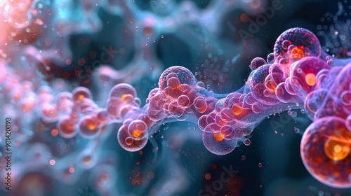Digital illustration of alveoli in colour background