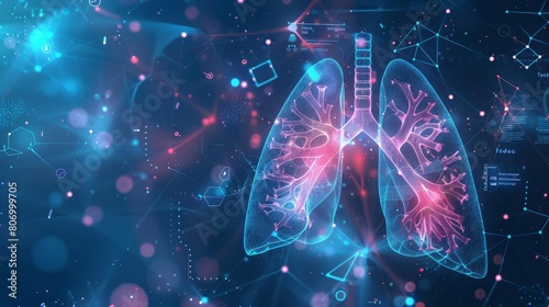 Digital illustration of human lungs with medical data overlays promotes lung health awareness, Sharpen banner template with copy space on center