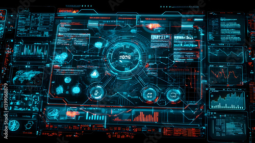 Digital Interface Display With Glowing Neon Elements