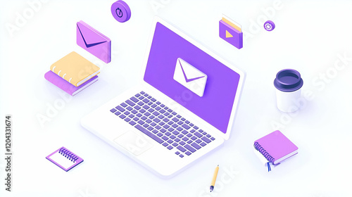 Digital Learning Hub, a close-up view of a laptop showcasing vibrant e-learning icons, symbolizing modern education and technology integration.
