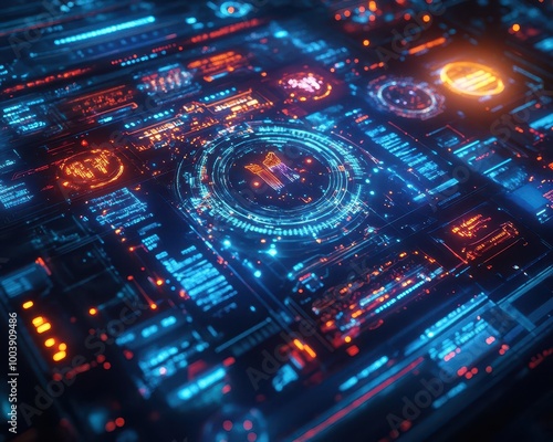 Digital marketing campaign with glowing holographic ads and social media tools Futuristic Hologram High Detail