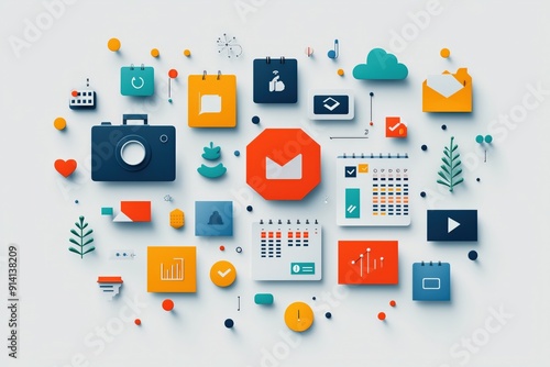 Digital marketing content calendar, scheduling posts, flat design illustration, No logo, No Trademark, No text, minimal concept with copy space for stock photo