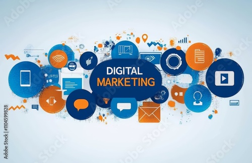 Digital Marketing Flat Vector Infographic Icons Concept Social Media SEO Email Content Strategy