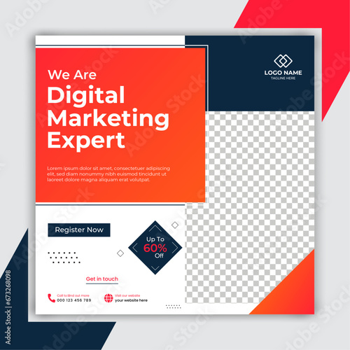 Digital marketing social media banner or post template, business promotional social media design