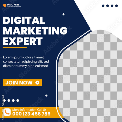 Digital Marketing Social Media Post Template, Digital marketing agency, Square Flyer Template, Digital Business Marketing Social Media Banner, Vector graphic ad template.