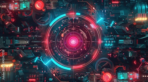 Digital marketing strategy layout with futuristic elements