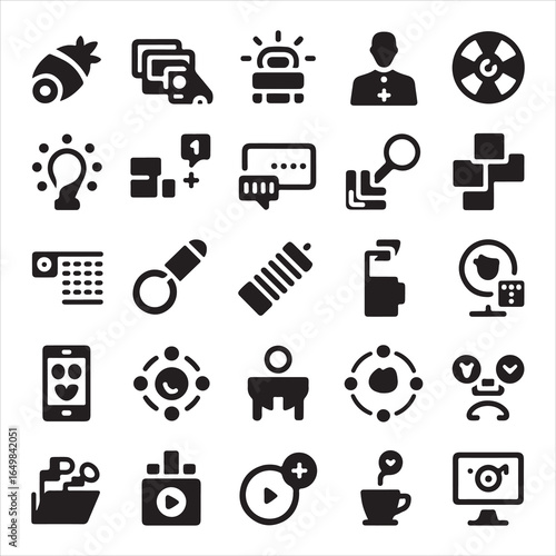 Digital marketing Web Icons Set, SEO analysis, keyword research, and search engine ranking glyph elements