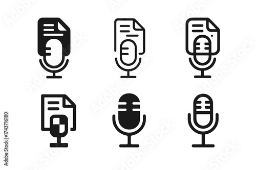 Digital Media Logos. Social media content creation. Set Logo of Digital Media: microphone and content icon. harmonious logo variations of the same emblematic