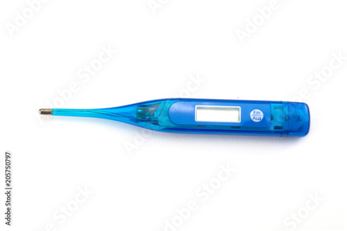 Digital medical thermometer isolated on a white background.