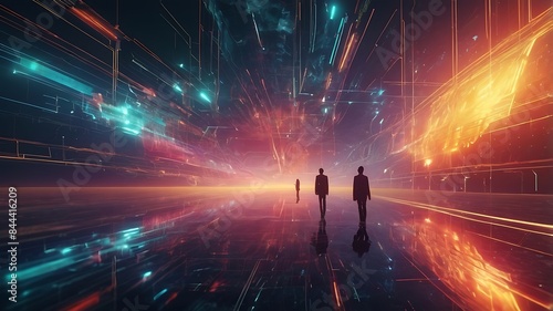 Digital modern illustration represent concept of technology, time, science, connections, web, internet and cyberspace with colorful fantasy design