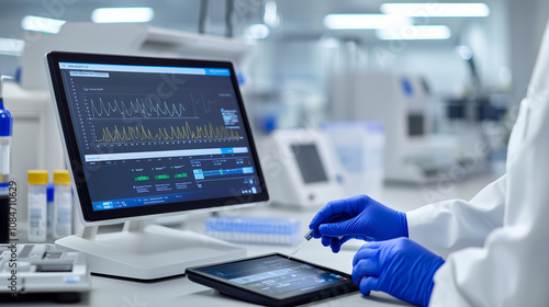 Digital Monitor in Genetic Testing Lab with DNA Sequence Analysis