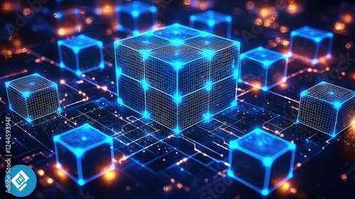 Digital Network: Abstract Cubes and Connections Representing Data and Technology
