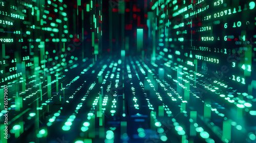 Digital network and futuristic technology concept, illustrating a sophisticated computer matrix and data flow in a cyber world