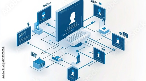 Digital Network System with Icons Representing User Profiles and Connections on a Computer Screen