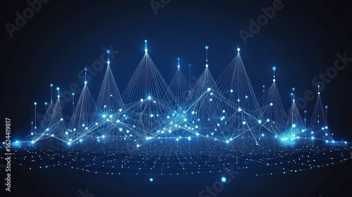 Digital Network Visualization with Blue Data Nodes and Connecting Lines in Futuristic Style
