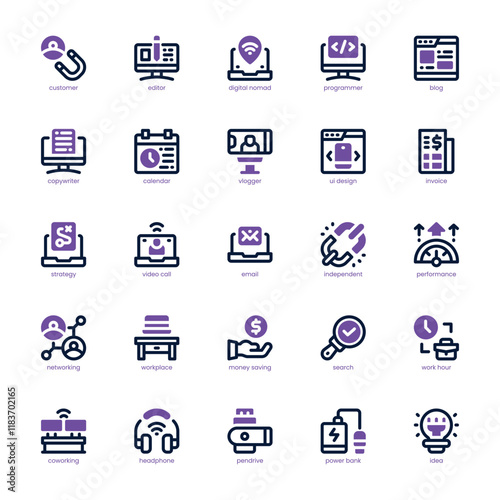 Digital Nomad Icon pack for your website, mobile, presentation, and logo design. Digital Nomad Icon dual tone design. Vector graphics illustration and editable stroke.