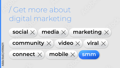 Digital online marketing web banner with keywords icons for business and social media marketing, SEO, content marketing, SMM, website, viral, keyword, advertise and internet marketing