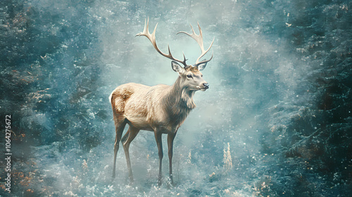 Digital painting of a deer in a mystical forest. Mystical. Illustration