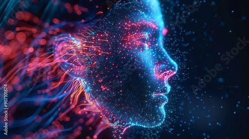 Digital Portrait A Sparkly Face, Red and Blue Glow, 3D Rendered Abstract Concept, AI Art, Digital Art, Abstract Art, Neon Art