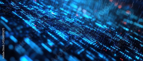 Digital rain of binary code cascading over a futuristic interface, deep cyberspace