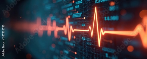 Digital representation heartbeat line transforms into AI code. Advanced AI tech monitors patient health and heart. Innovation in cardiology medicine, intelligent diagnostic tech.