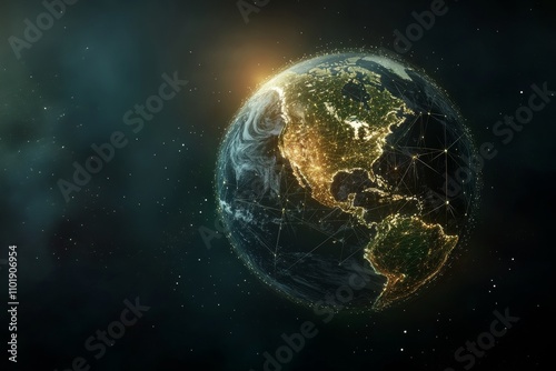Digital Representation of Earth with Glowing Nodes Highlighting Global Connectivity