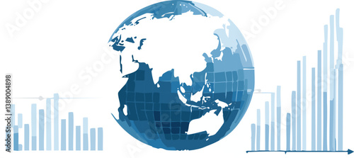 Digital rise graph chart on light blue technology globe background. Stock market or trade diagram in futuristic hologram style. Economy or finance concept. Abstract low poly vector illustration.