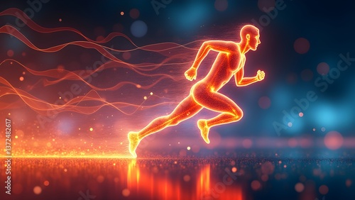 Digital Runner: Energetic Glowing Figure in Motion, Abstract Athletic Performance Illustration