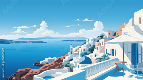 Digital santorini landscape vector art illustration abstract graphic poster web page PPT background