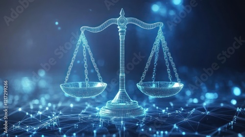 Digital scales of justice on network.