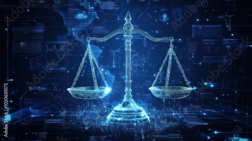 Digital scales of justice on the background of artificial intelligence technology, the balance between technological innovation and digital law with futuristic elements of legal needs