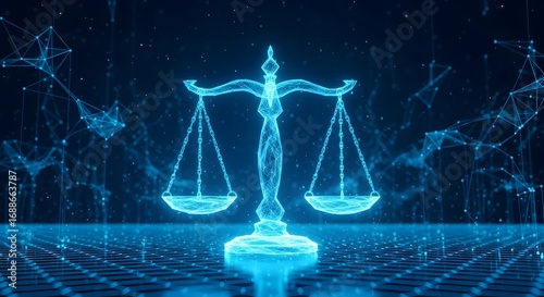 Digital Scales of Justice with Network Background photo