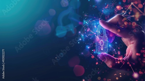 Digital Security: A Hand Holding a Glowing Padlock Symbol