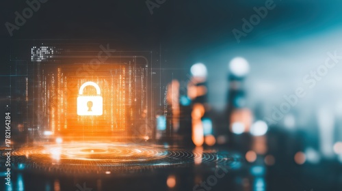 Digital Security Concept with Locked Padlock and Data Protection Illustrations Representing Cybersecurity and Privacy Measures