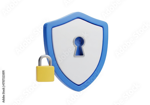 Digital security shield and padlock representing protection and data access isolated on transparent background