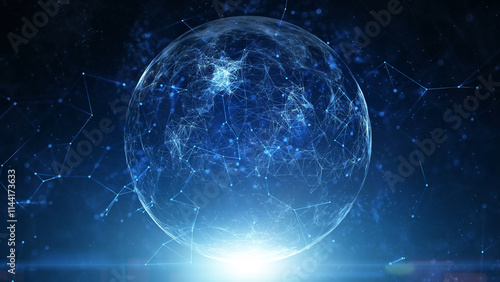 Digital shining sphere technology cyberspace illustration background.