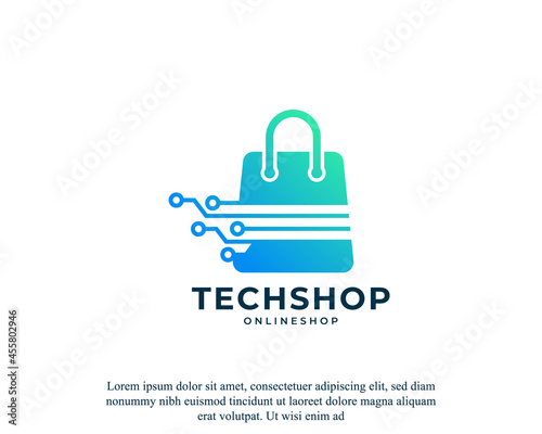 Digital Shop Symbol. Shopping Hand Bag with Electronic Computer Chip Design Template Element