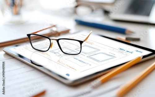 Digital sketch of a website layout on a tablet, creative design process, user-centered design approach