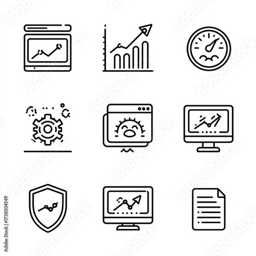 Digital Stock Market and Trading Line Icon Set. Business Growth, Investment Analytics, and Online Finance.