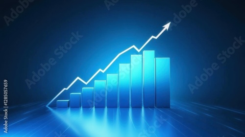 Digital stock market chart with step graph, rising bars representing investment growth, blue financial background, futuristic business analysis concept, economic trends visualization.