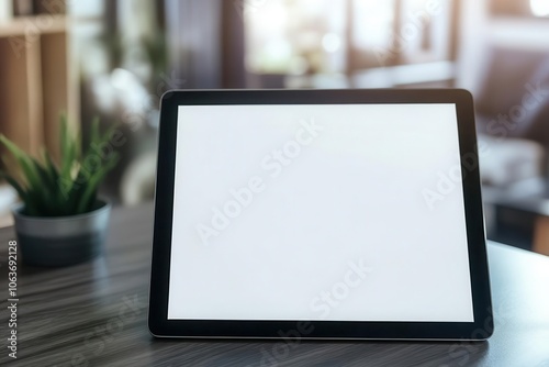 Digital tablet with blank space for text in focus, modern workspace background, business text input, techsavvy