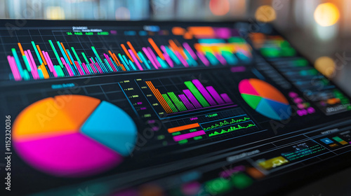 Digital tax optimization concept with colorful pie charts and bar graphs, displayed on a sleek touchscreen interface.