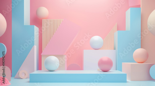Digital Technology Abstract Background, Geometric Shapes on Screen, 3D Rendering