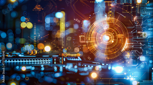 Digital Technology and Computer Communication, Futuristic Network Concept, Blue Abstract Background with Circuit and Data