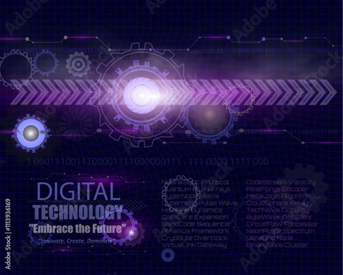Digital technology banner with blue and Purple background concept featuring light purple effects. Abstract tech design with futuristic innovation themes, highlighting data, internet networks.EPS 10.
