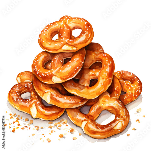 Digital technology bread pretzel watercolor design illustration