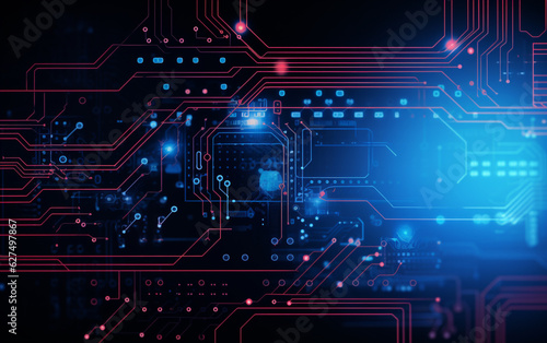 Digital technology futuristic banner with circuit lines