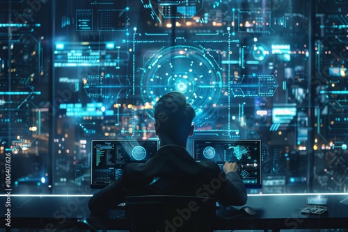 Digital technology, internet network connection, big data, digital marketing IOT internet of things concept. Man using modern computer surfing